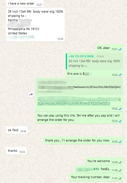 Forward customer addresses + product details to us. ~Customer's detailed address,Country, State, City, Street, House Number